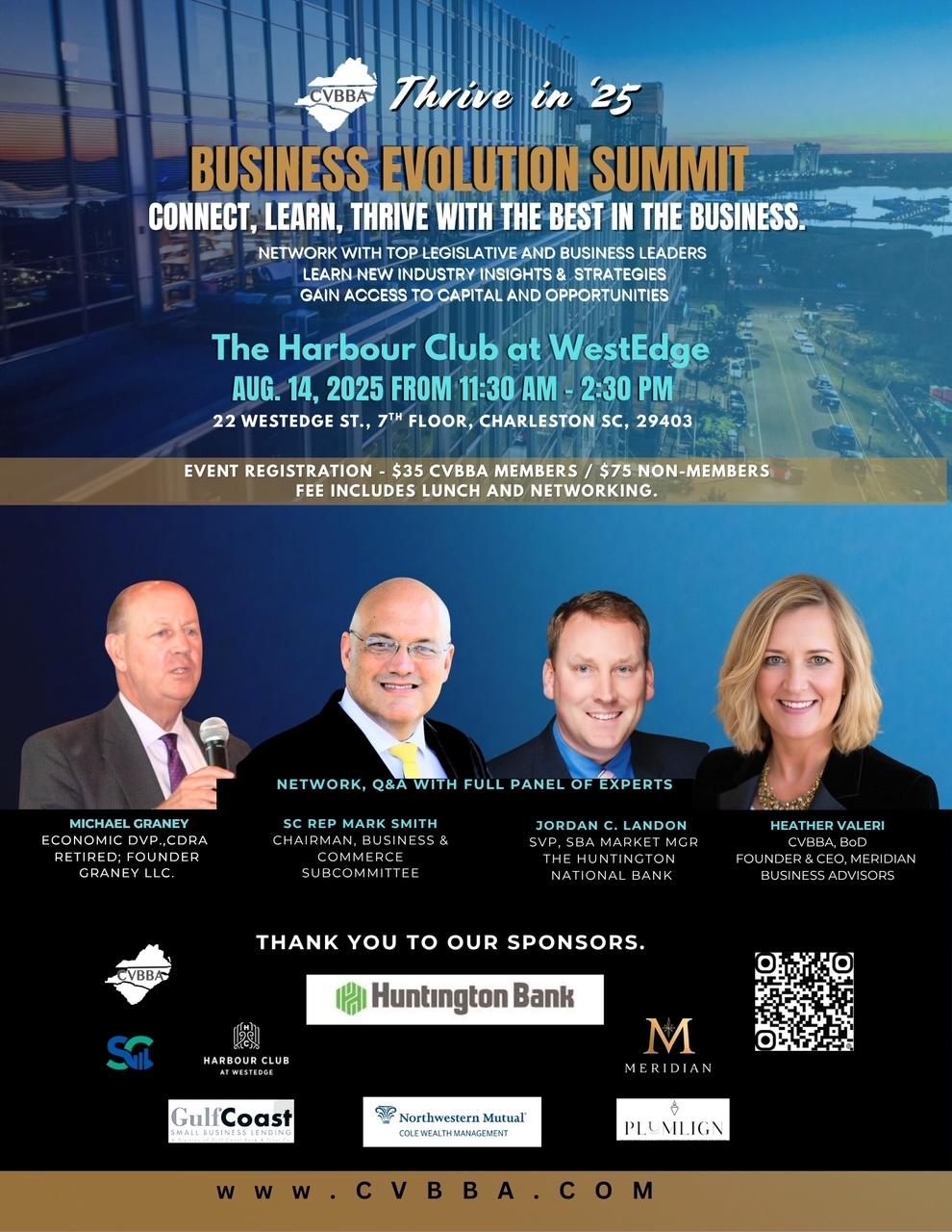 Brokers, you are invited to the SC Business Evolution Summit on August 14, 2025, from 11:30am-2:30pm at The Harbour Club in Charleston, SC.